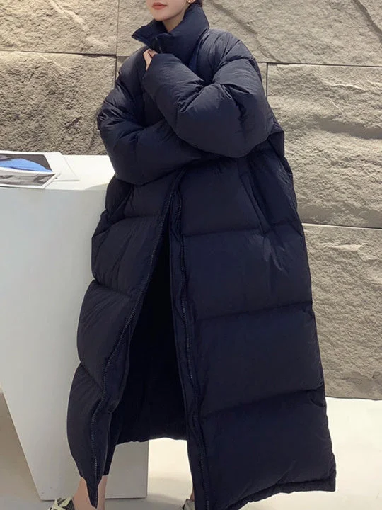 Women Long Sleeve Solid Zipper Loose Down Jacket Coats